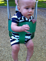 Jack is getting more mischievous, he's learned to pull himself up onto things, which means our bathroom barricade is not so much a barricade anymore but something to climb on. He also loves the swings and going to the park (read: more things to climb on).